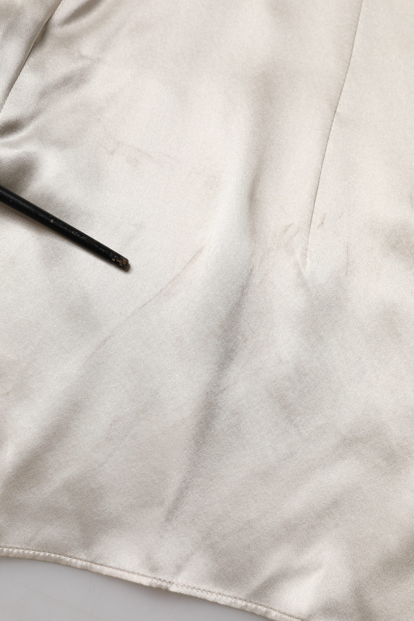 Dolce & Gabbana Beige Satin Silk Collared Long Sleeves Top