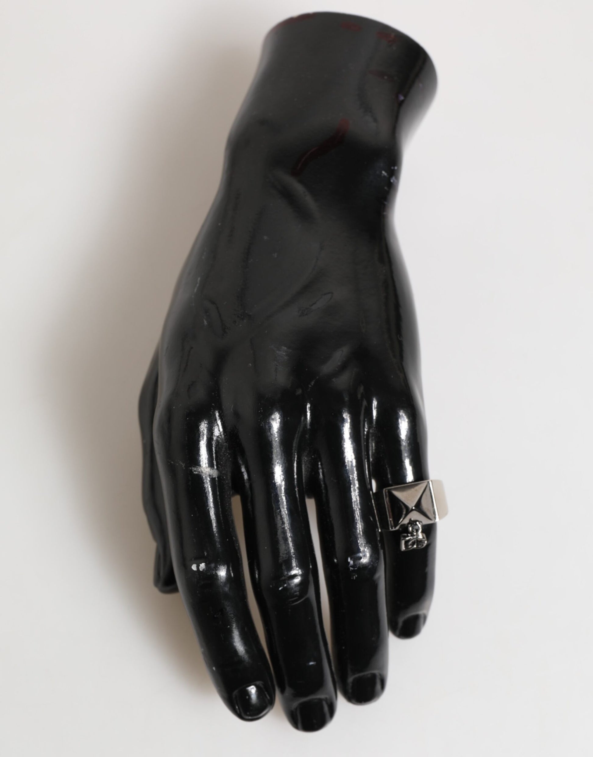 Dolce & Gabbana Silver Tone Pyramid DG Logo Real Brass Ring