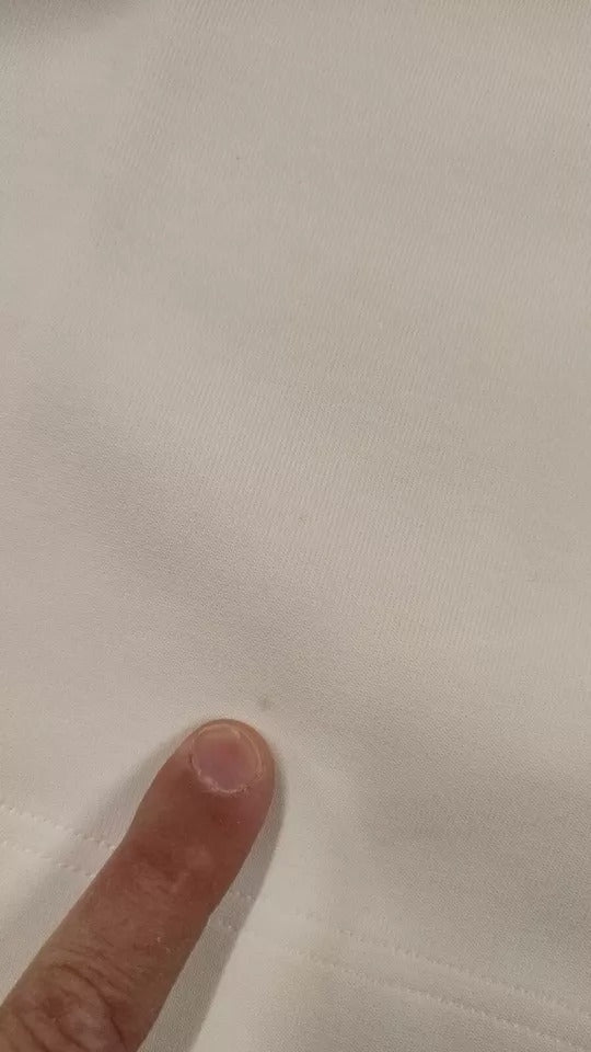 This item has a very very minor defect, there is a tiny stain on the front and back, barely noticeable (see pictures).